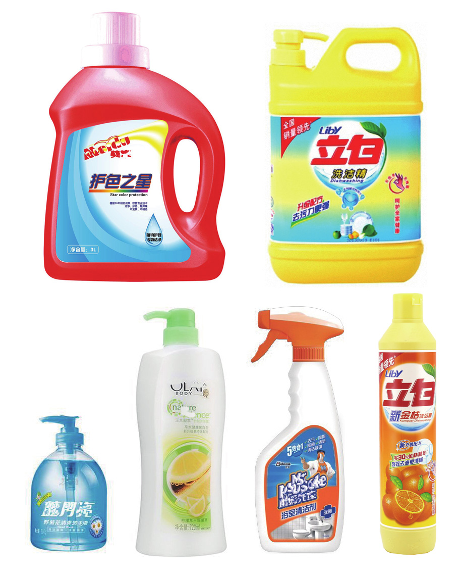 沐浴液、洗發(fā)水、洗潔精、洗衣液、洗手液、洗滌劑、消毒液等日化半流體灌裝、搓蓋、貼標(biāo)生產(chǎn)線